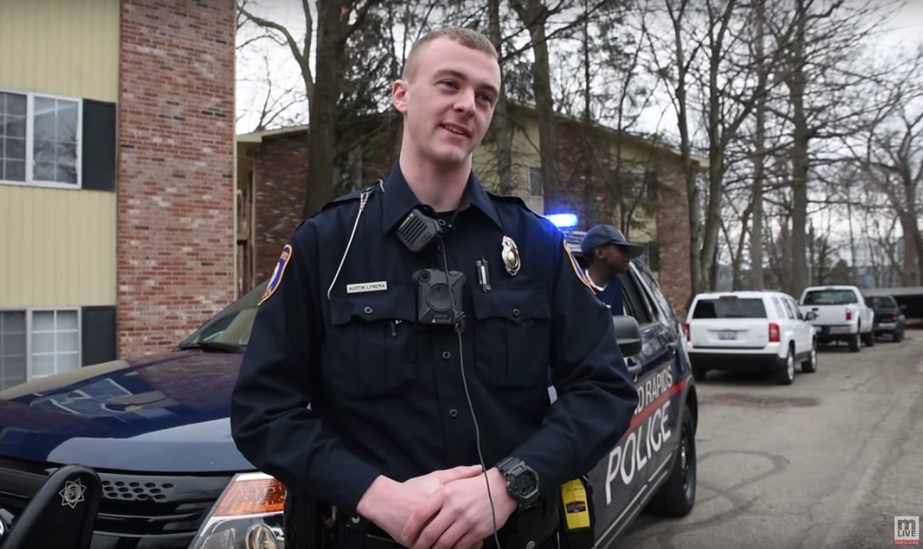 “The next day, myself and couple other partners brought some Krispy Kreme donuts personalized for him with ‘Happy Birthday,’ a Grand Rapids Police goodie bag full of shirts, stickers, hats, [and] toys,” said Austin in an interview. “We gave him a chance to run around with the car and hit some lights and sirens and play with it, and put on the heavy vest. They all had a good time with it.”