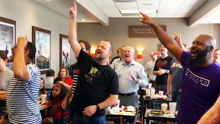 As a Christian-owned company, Chick-fil-A has certainly made its mark following in the footsteps of Jesus by serving the needy, feeding the homeless, and praying for the hurting. A Christian flash mob decided to bring church to Chick-fil-A in a whole NEW way by bursting out into praise with a powerful rendition of the worship song “Every Praise.”